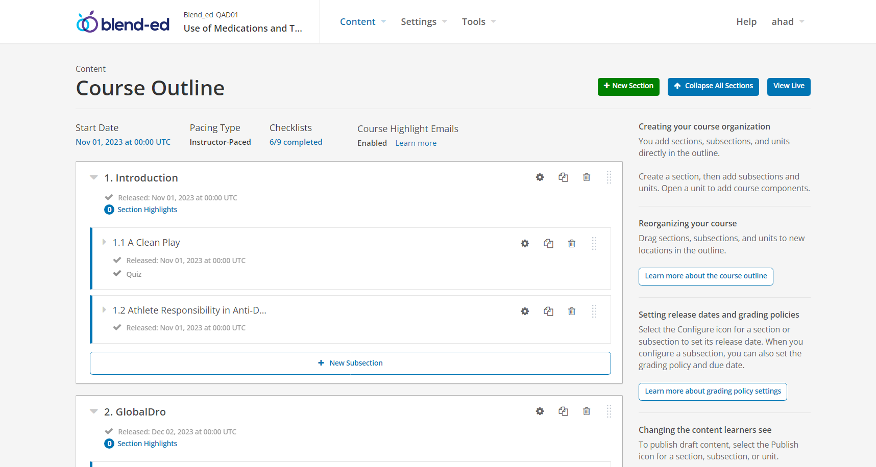 Let's look how Blend-ed customized a dashboard over Open edX below,