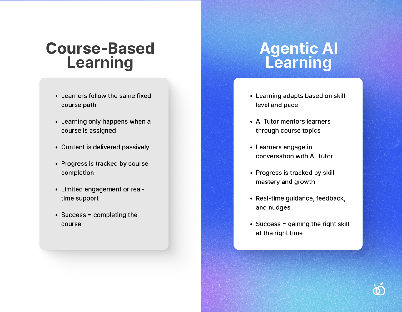 Agentic AI learning isn't just a new feature in LMS software—it's a fundamental rethink of how we empower people to grow. In a world that moves fast and expects more, AI agents bring the precision, personalization, and proactivity needed to close skill gaps, unlock potential, and create meaningful learning at scale.